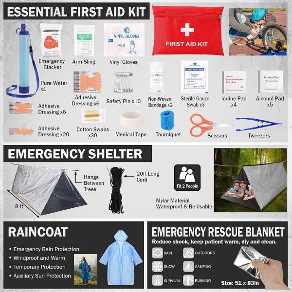 আপনি ক্যাম্পিং, হাইকিং, বুশক্রাফ্ট, বেঁচে থাকার প্রশিক্ষণ বা জরুরী পরিস্থিতির জন্য প্রস্তুতি নিচ্ছেন না কেন, এই কিটটি সবচেয়ে গুরুত্বপূর্ণ যখন আপনি প্রস্তুত তা নিশ্চিত করতে সহায়তা করে।